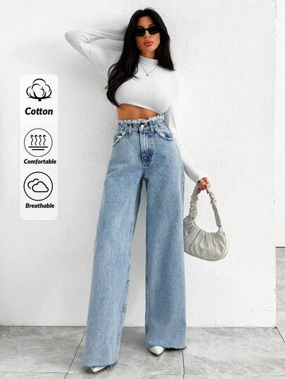 EURMUSE HIGH RISE WIDELEG JEAN WITH FRAYED POCKET - Medium Wash - View 1