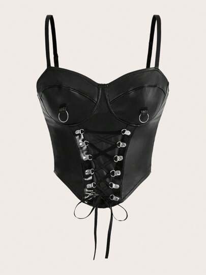 SHEIN ICON Lace Up Front PU Leather Cami Top - Black - View 2
