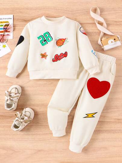 SHEIN Young Girl Casual Retro Street Fashion Avant-Garde Sports Style Round Neck Long-Sleeved Letter Printed Sweatshirt And Leggings Trousers Two-Piece Set - Apricot - View 1