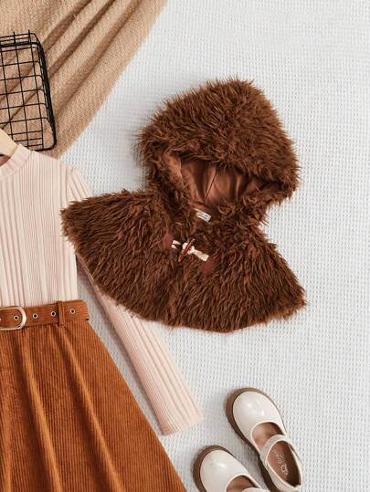 SHEIN Tween Girl Thick Fluffy Double-Sided Short Jacket For Outerwear,In Fall/Winter - Brown - View 1