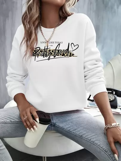 SHEIN LUNE Heart & Letter Graphic Thermal Pullover - White - View 1