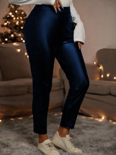 SHEIN LUNE Plus Size High Waist Bodycon Pants - Navy Blue - View 1