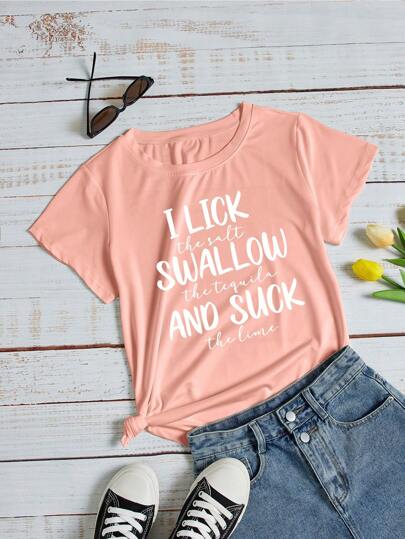 SHEIN LUNE Slogan Graphic Tee - Pink - View 1