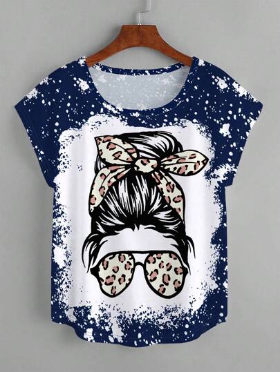 SHEIN LUNE Women's Leopard Character Printed Round Neck T-Shirt - Multicolor - View 1