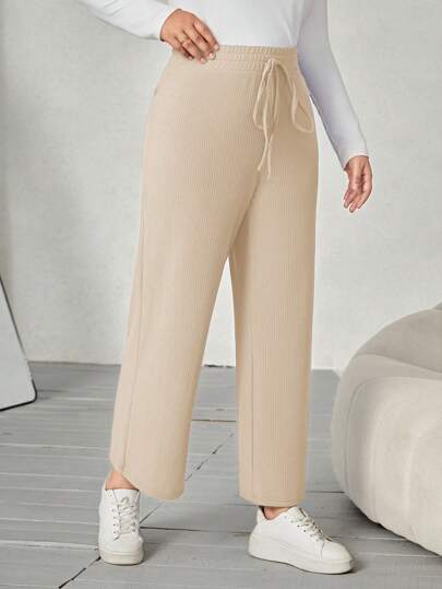 SHEIN LUNE Women's Plus Size Wide Leg Pants With Knot Waistband - Apricot - View 1