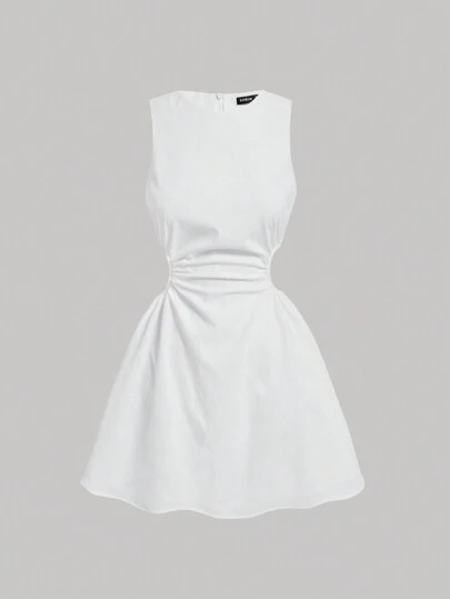 SHEIN MOD Romantic Bubble Ladies' Dress, White With Hollow Pattern - White - View 4