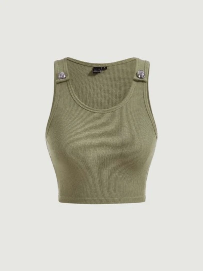 SHEIN MOD Solid Crop Tank Top - Army Green - View 1