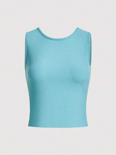 SHEIN MOD Solid Ribbed Tank Top - Blue - View 1