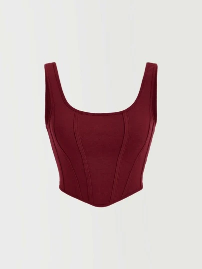 SHEIN MOD Women's Solid Color Asymmetric Hem Cropped Fitted Tank Top Burgundy Red - Burgundy - View 1