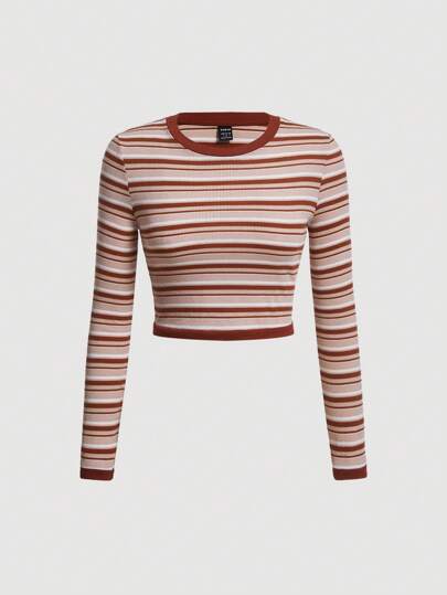 SHEIN MOD Striped Print Crop Tee - Multicolor - View 1