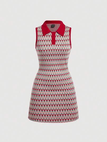 SHEIN MOD Women'S Floral Printed Button Closure Semi-Placket Bodycon Dress,Valentine Outfits - Red - View 2