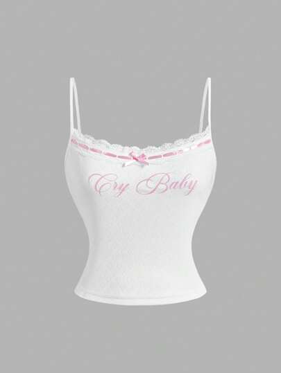 SHEIN MOD Women's White Lace Printed Camisole Top Party - White - View 1