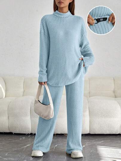 SHEIN Maternity Drop Shoulder Tee & Adjustable Waist Pants - Blue - View 1