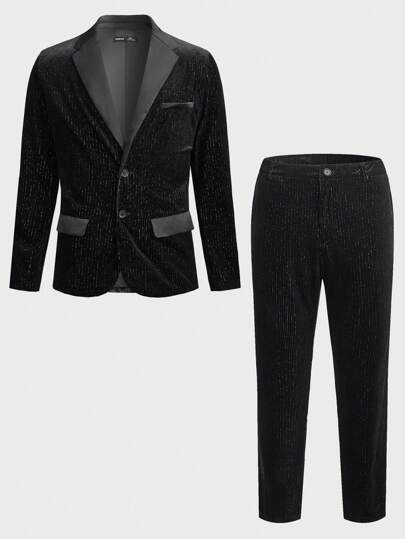 Manfinity RebelGame Men Lapel Collar Velvet Blazer & Pants Set - Black - View 1