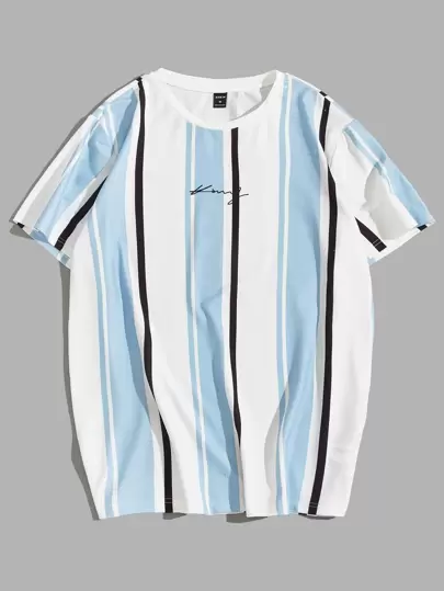 Manfinity VCAY Men Letter And Striped Print Tee - Blue and White - View 1