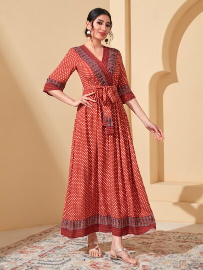 Modelyn Geo Print Belted Dress - Multicolor - View 1