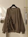 Mulvari Women's Textured Pullover Casual Plus Size Sweatshirt Dress For Autumn Winter, Casual Dress Sweatshirts, For Casual Daily/At Home