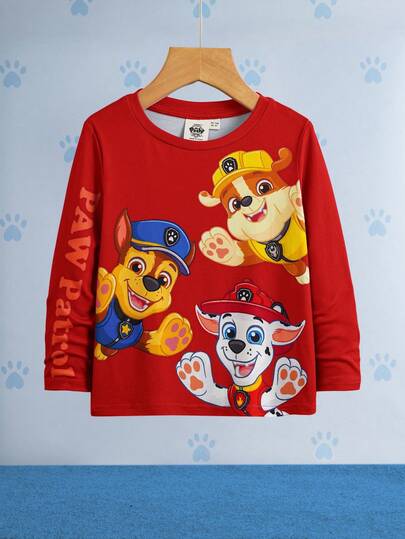 SHEIN | PAW Patrol Young Boy Casual Cartoon Dog Print Round Neck Long Sleeve Knit T-Shirt, Spring/Autumn - Red - View 1