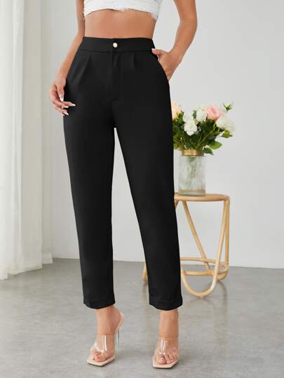 SHEIN PETITE Solid Slant Pocket Suit Black Pants In Fall/Winter - Black - View 1