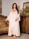 PalaceNights 2pcs Pajama Set: Floral Embroidered Splice Cami Nightgown & Robe, Fall Winter Clothes