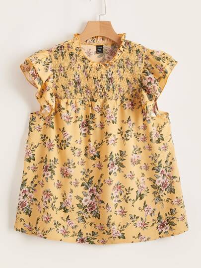 SHEIN Unity Plus Floral Print Shirred Yoke Ruffle Armhole Top - Multicolor - View 1