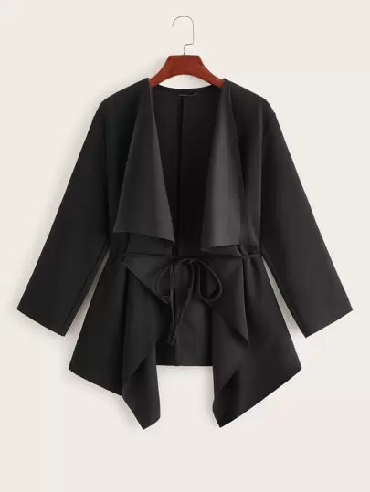 SHEIN Clasi Plus Waterfall Collar Belted Coat Winter Autumn - Black - View 1