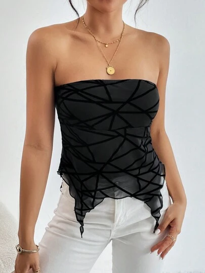SHEIN Privé Geo Print Asymmetrical Hem Tube Top - Black - View 1