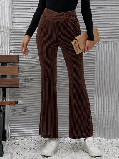 SHEIN Privé High Waist Flare Leg Pants - Brown - View 1
