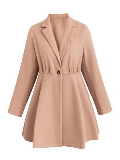 Celure Plus Lapel Neck Single Button Blazer Dress - Khaki - View 1