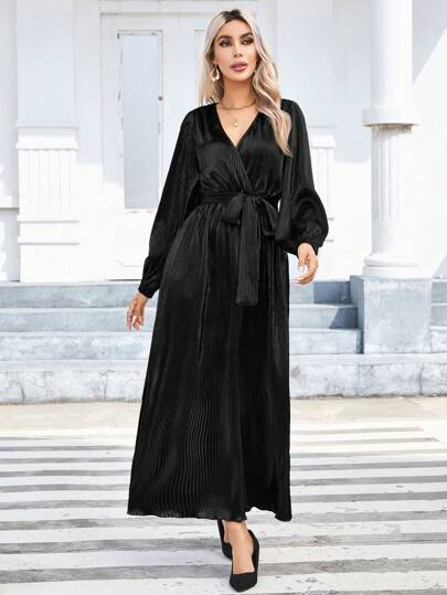 SHEIN Privé Women'S Wrap Tie Dress - Black - View 1
