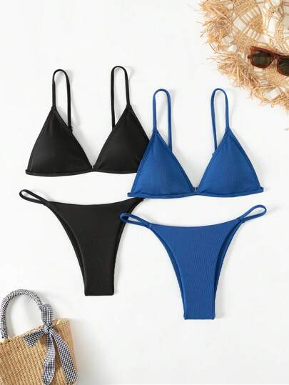 SHEIN Swim Summer Women's Solid Color Bikini Set - Multicolor - View 1