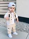 SHEIN Bộ 3 áo khoác denim gấu thường ngày mùa thu/đông cho bé trai, áo phông dài tay màu trắng, quần màu be, thích hợp cho tiệc sinh nhật, tiệc rave, tiệc tối, biểu diễn, đám cưới, tiệc chào đón em bé, lễ rửa tội và tiệc sinh nhật đầu tiên, trang phục dễ thương cho trẻ mẫu giáo