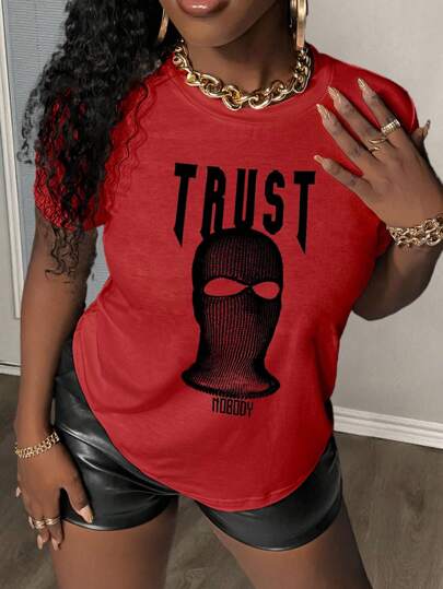 Slaydiva Pattern Printed Short Sleeve T-Shirt - Red - View 1