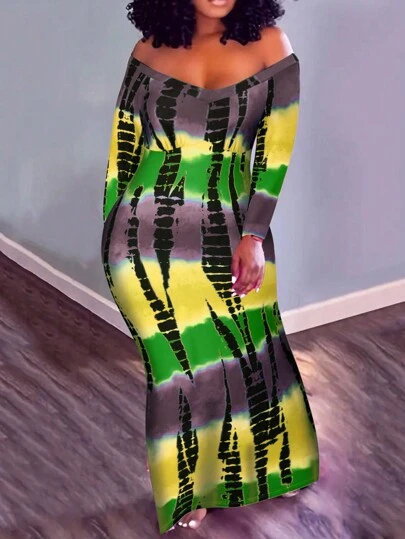 Maweii Plus Size Women'S Tie-Dye Off Shoulder Dress - Yellow - View 1