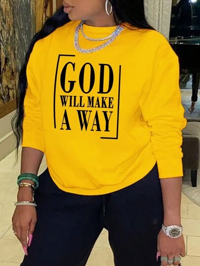 INAWLY Women's Plus Size Yellow Slogan Printed Sweatshirt - Yellow - View 1