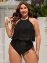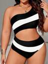 SHEIN Swim Curve Plus Size Summer Beach One Piece Swimsuit With Camisole Strap, 2-Piece Set