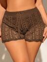 SHEIN Swim Curve Summer Beach Plus Size Solid Color Sleeveless Cover Up Dress With Tassel Decoration, Cross Wrap High Low Design