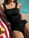 Swim Mod 3pcs/Set Solid Floral Textured Fabric Pearl Shell Decor Frill Trim Halter Triangle Bikini Top, Side Tie Bottoms And Mini Skirt Sexy Swimsuit Set, Spring/Summer Beach Skirt Set Crochet Bathing Suit Beach Two Pieces Set Crochet Bikini Set Lace Two Pieces Set
