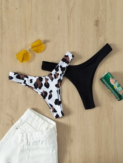 SHEIN Swim Summer Beach 2 Packs Leopard Print High Cut Bikini Bottom Set - Multicolor - View 1