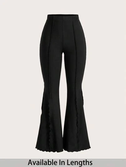 SHEIN Tall CURVE Plus Tall Women Lettuce Trim Elastic Women's Flared Pants - Black - View 1