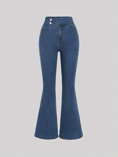 SHEIN Teen Girl Flare Leg Jeans - Dark Wash - View 1