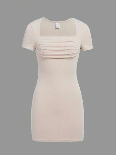 SHEIN Teen Girl Square Neck Ruched Bust Dress - Beige - View 1