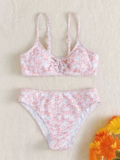 SHEIN Teen Girls Ditsy Floral Bikini Set Summer Beach - Multicolor - View 1