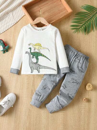 SHEIN Toddler Boys Dinosaur Print Sweatshirt & Sweatpants - Multicolor - View 1