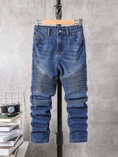 SHEIN Tween Boy Cat Whisker Washed Jeans - Dark Wash - View 1