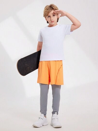 SHEIN Tween Boys' Casual And Simple Daily Long Pants - Orange - View 4