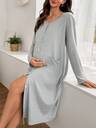 Moonlight & Mama Striped Print Buttoned V-Neck Long Sleeve Casual Maternity Dress/Nightgown, Winter Pregnancy Dress Maternity Loungewear Maternity Night Gown Maternity Dresses