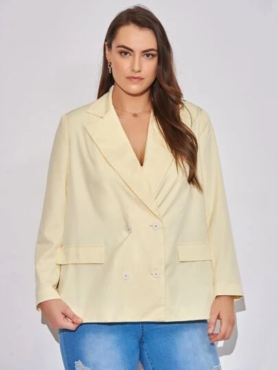 SHEIN Unity Plus Lapel Neck Double Breasted Blazer - Yellow - View 1