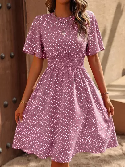 Breezaya Confetti Heart Print Butterfly Sleeve Dress - Mauve Purple - View 1