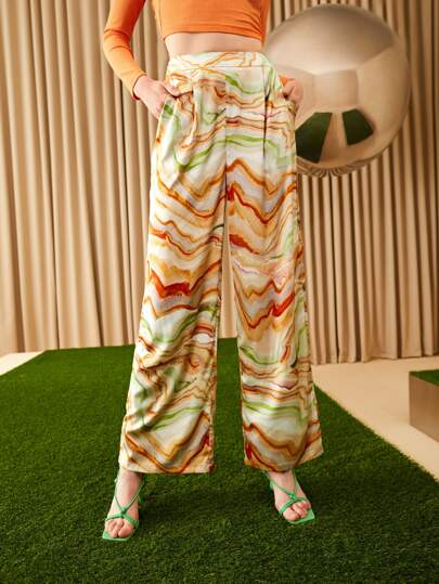 SHEIN VCAY Elastic Waist Marble Print Wide Leg Pants - Multicolor - View 1